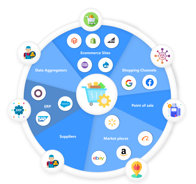 Delivering a powerful infrastructure for your B2B with unique integrations covering the front end with Magento, BigCommerce, WooCommerce, and Shopify; Akeneo, Pimcore PIM systems for enriched product data, and Backend optimized with Odoo modules.