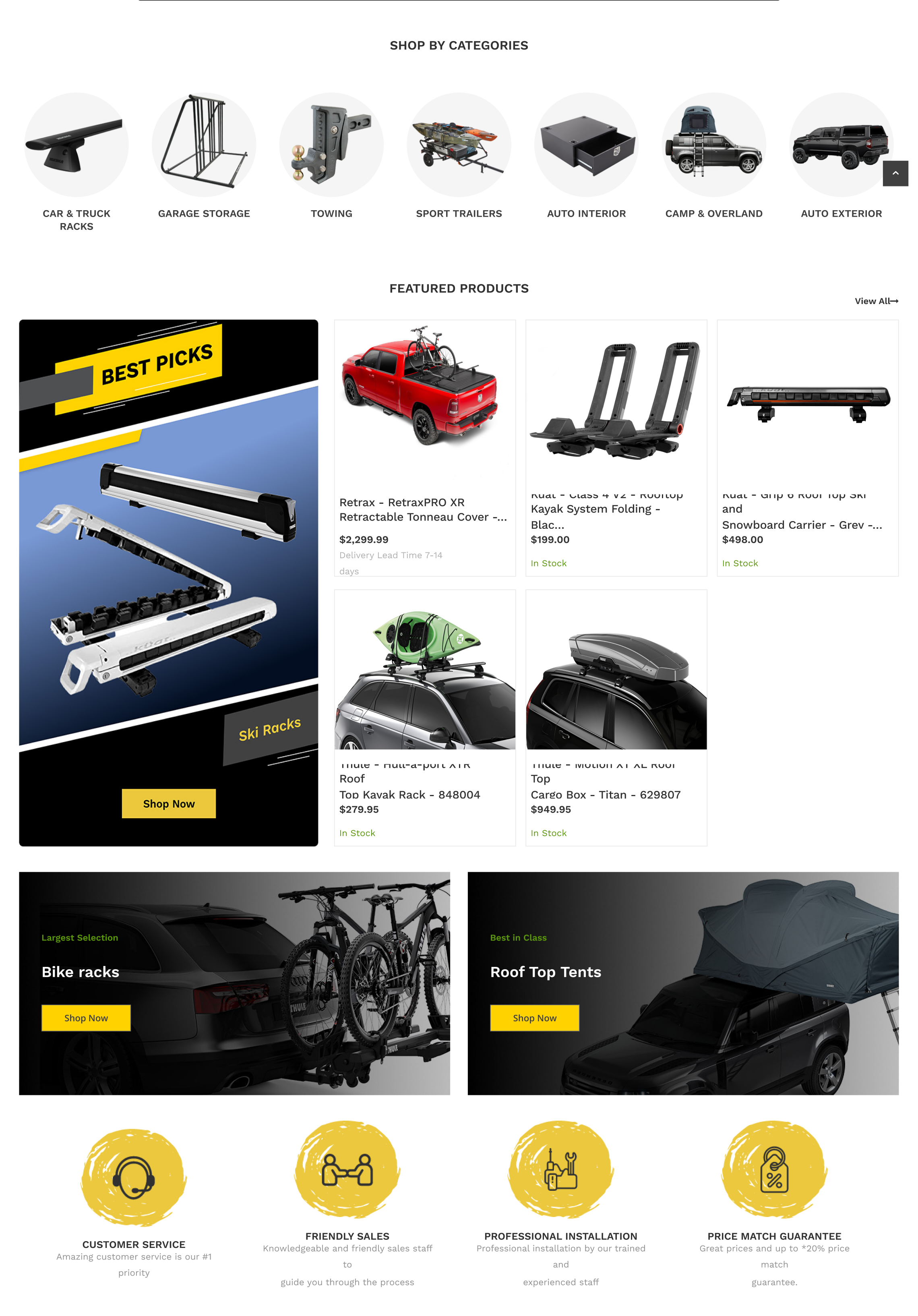 - Vehicle Fitment Data, a custom search module was implemented to allow the customers to easily search products that are compatible with the customer’s vehicles. The feature was infused on the main home page and the product listings page. This boosted sales and reduced abandoned carts.